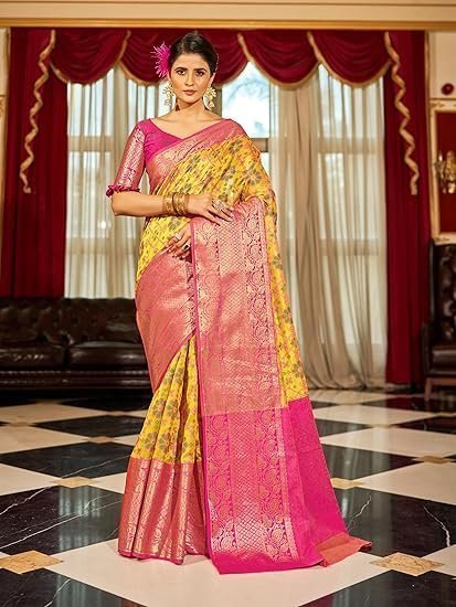 Women’s Kanjivaram Woven Soft Silk Saree With Blouse Piece